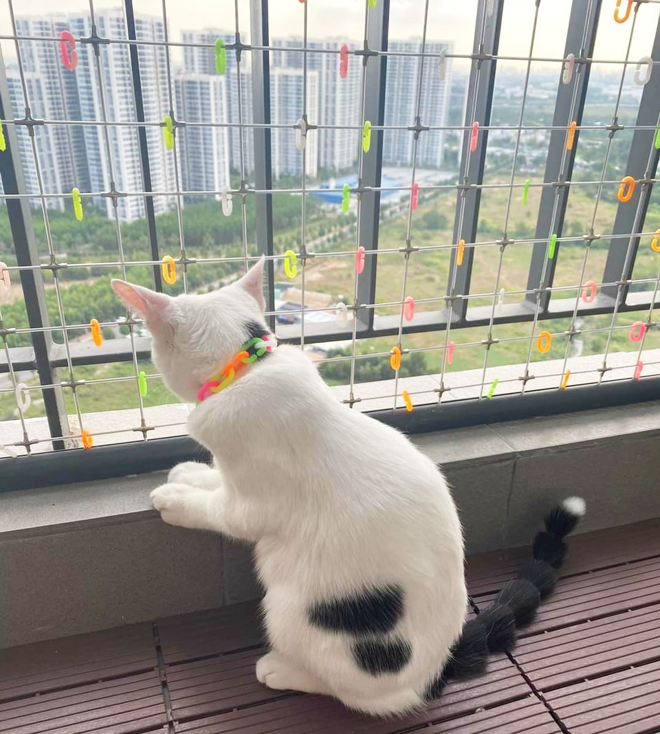 Lưới an toàn có các sợi cáp xoắn bọc nhựa HDPE trong suốt, tạo hiệu ứng “lưới tàng hình”, không làm hạn chế tầm nhìn từ ban công ra bên ngoài.
